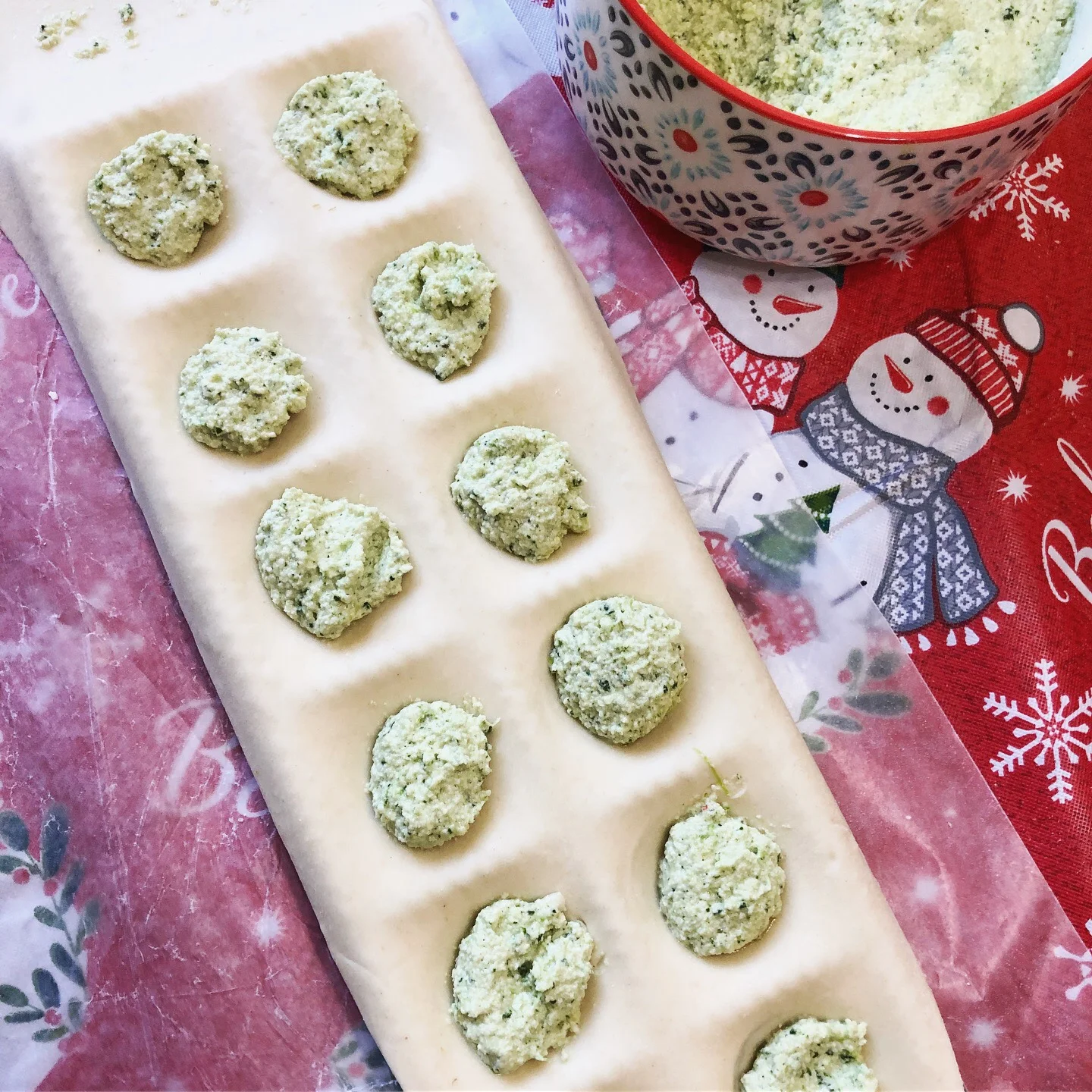 STEP 6: Place the finished ravioli on a tray and freeze them until somewhat hardened, and then place in bags for future use and freeze